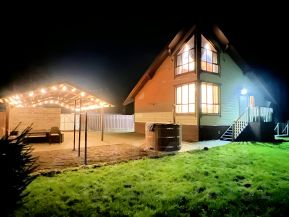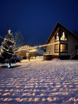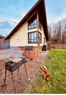 Спальных мест - 9 . В доме два сан узла , душевая и ванна . Цена домика указана за двоих человек. Доплата за каждого гостя 1000 руб.