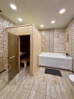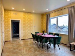 Дом рассчитан на 18 человек. Спальные места - три кровати 160*200 и 6 двуспальных раскладных диванов. 2 ванные комнаты и 5 сан. узлов.