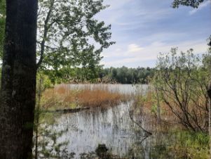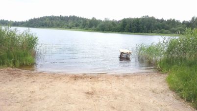 До берега 20 метров. За участком начинается лес, в 300 м песчаный пляж.