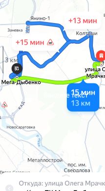 Всего 15 мин на маршрутке и 12 мин на машине от М Дыбенко