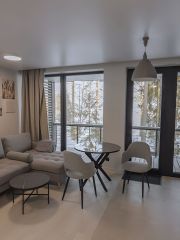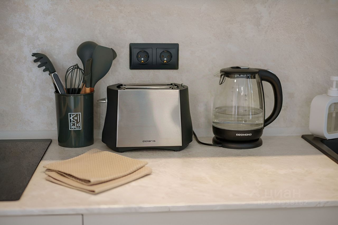 — Кухня: индукционная плита, микроволновая печь, электрический чайник, тостер, холодильник с морозильной камерой, посудомоечная машина, таблетки для посудомоечной машины, моющие средства, посуда, капсульная кофемашина (капсулы приобретаются отдельно).