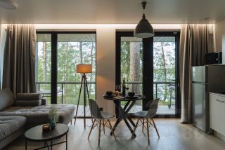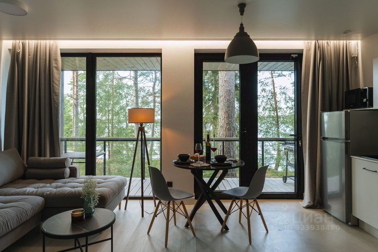 Мы находимся в коттеджном поселке Сосновый пляж в 120 км от СПб. Компактный дом с 1 спальней и кухней-гостиной на 1 линии.