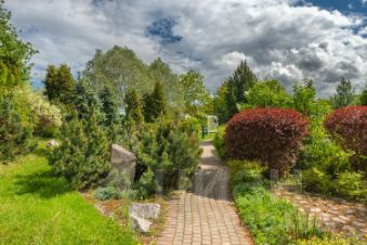 Участок ухожен, выполнен ландшафтный дизайн, установлены дорожки, зелёные насаждения.