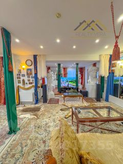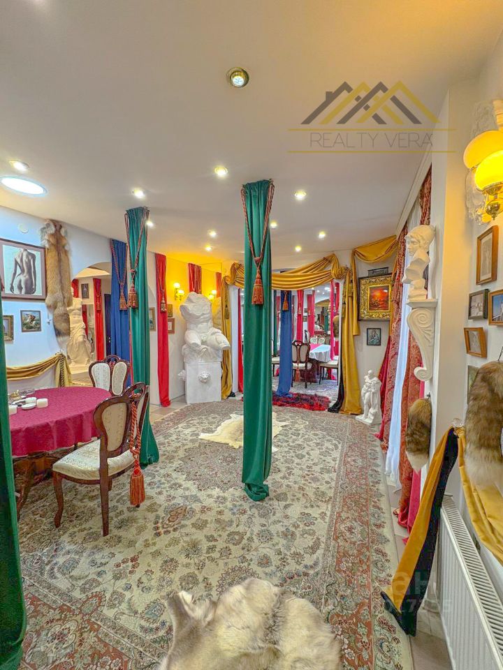 Мебель и техника: 2 холодильника, посудомоечная машина, 11 телевизоров, камин, интернет со скоростью 200 мбит, гидромассажные ванны, множество скульптур и картин, в доме примерно 250 зеркал, на полу ковры и шкуры животных(можно убрать по договорённсоти)