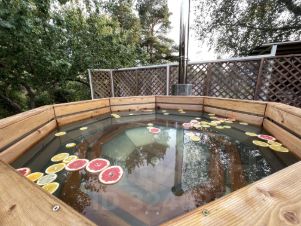Сибирский чан (2025 г.) на 8 человек: подготовка — 4 часа, температура 4045 C. Возможен декор цитрусами, лепестками и маслами.