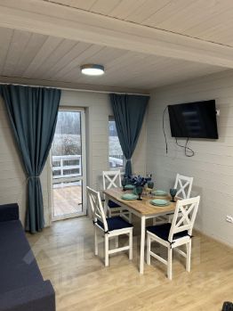 Коттедж находится в 77 км от Санкт-Петербурга и в 2 км от ближайшего склона.