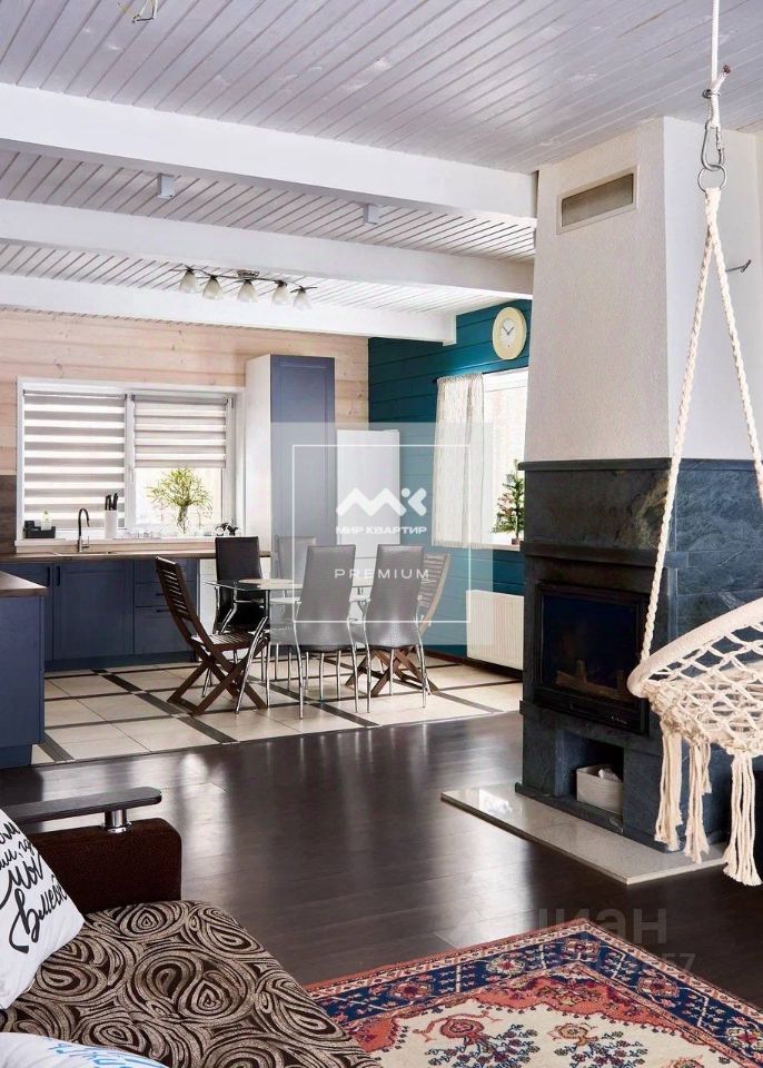 Просторная кухня-гостиная с камином санузел с ванной.