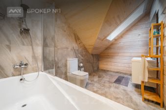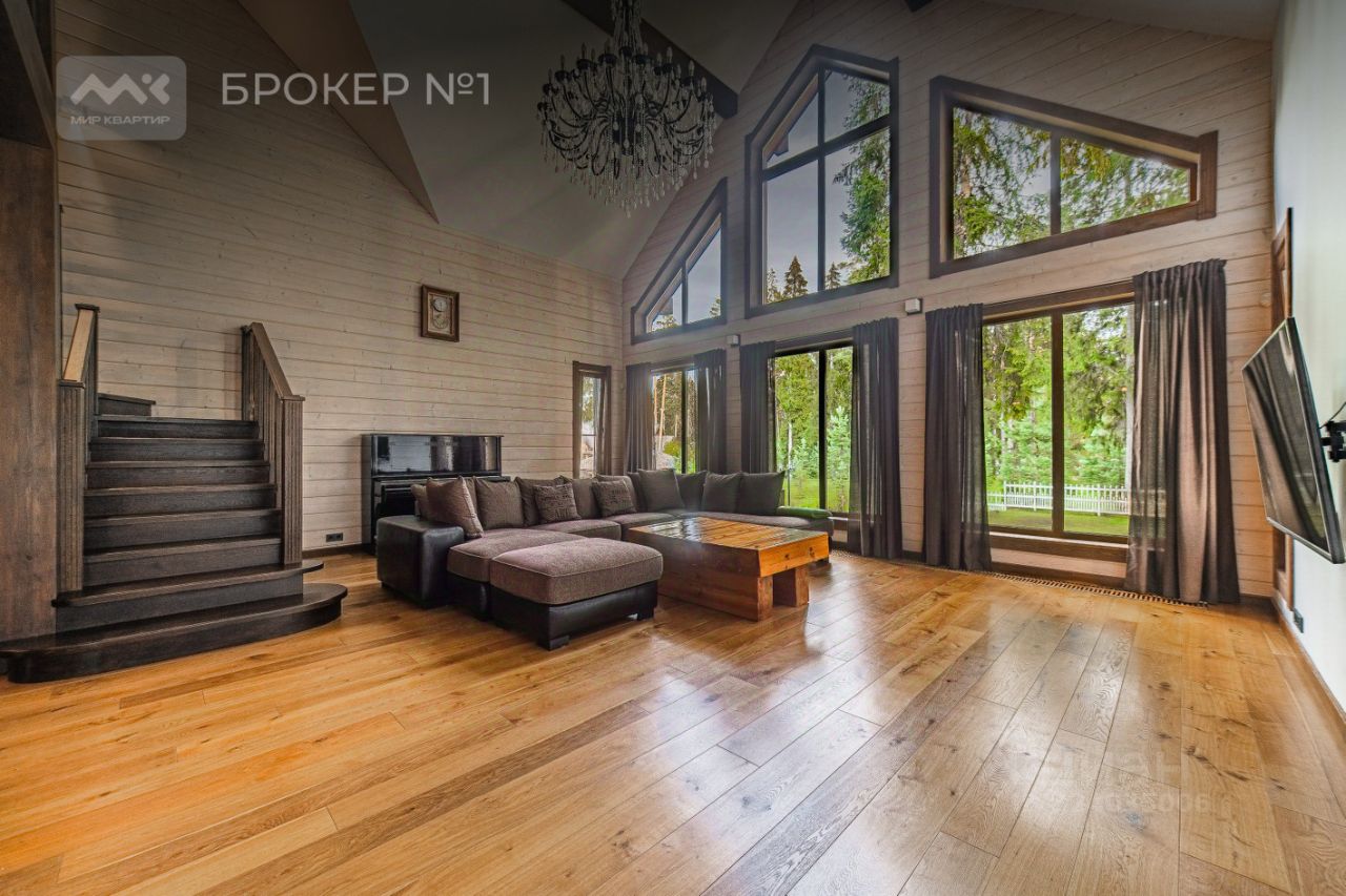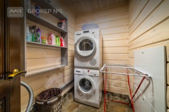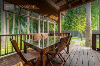 Пять спален с двуспальными кроватями. Огромная гостиная со вторым светом и панорамными окнами. Современная кухня с обеденной зоной и выходом на террасу. Теннисная. Комната отдыха. Три санузла. Три гардеробные. Постирочная. Баня на дровах.