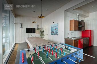 На первом этаже расположен просторное и светлое открытое пространство: кухня-столовая с выходом на террасу, гостиная с панорамным остеклением и вторым светом, а также уютная игровая комната. Второй этаж включает в себя мастер-спальню с собственной ванной комнатой и выходом на террасу, три детские комнаты и две гостевые спальни. Все комнаты обставлены с учетом последних трендов в дизайне и оснащены высококачественной мебелью и техникой.