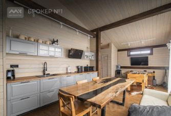 Во всем доме система кондиционирования, регулировка температуры в каждой комнате, теплые полы и автоматические блэкаут шторы. Есть теплый гараж на два автомобиля с доступом прямо из коттеджа. По всему периметру дома просторная терраса с возможностью выхода из каждой комнаты.
