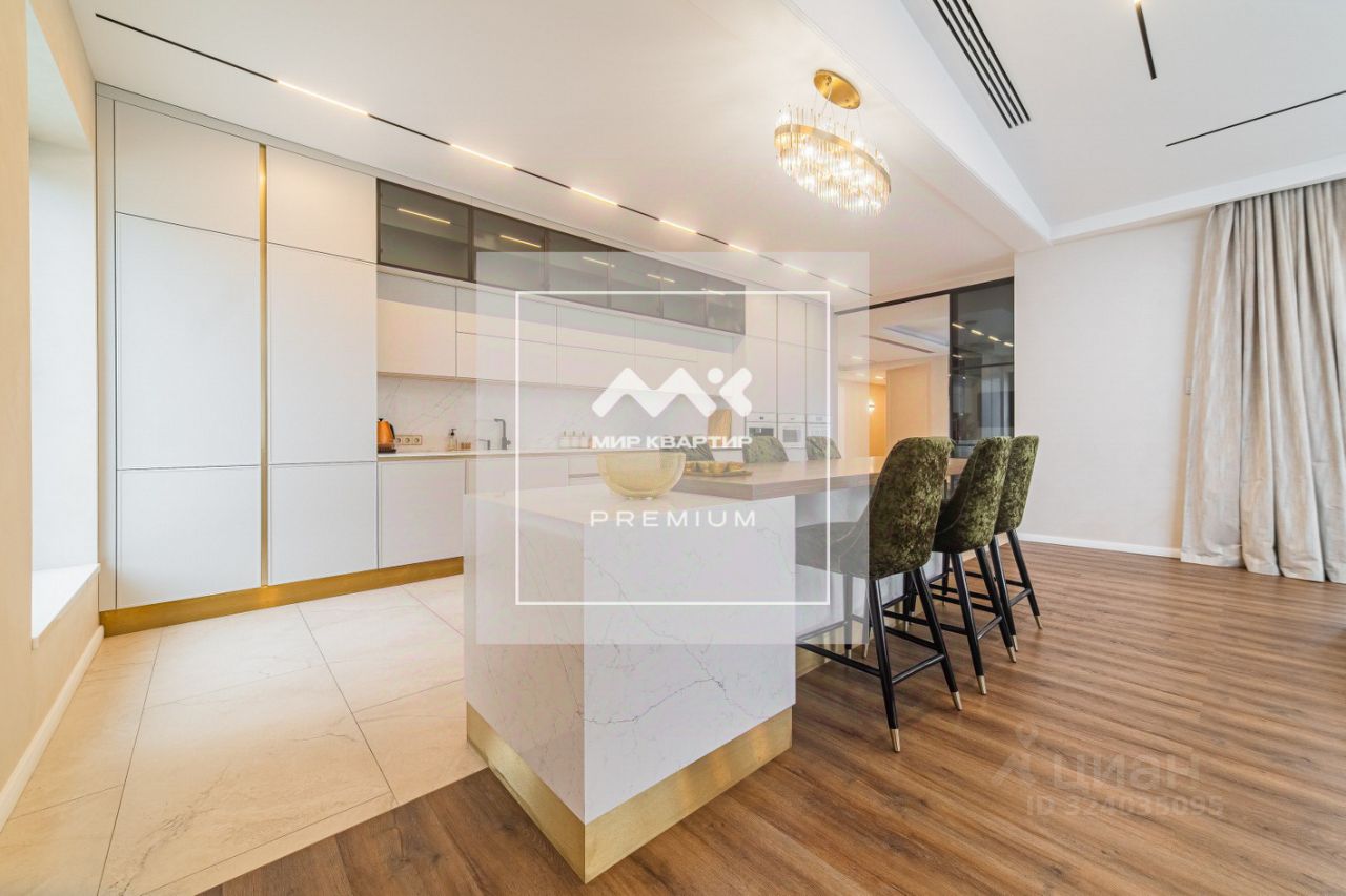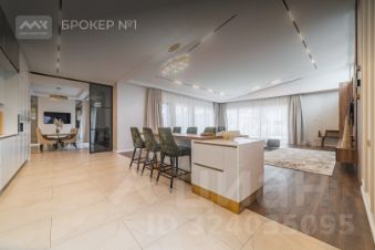 Кухня-гостиная с высокими потолками станет настоящим центром притяжения для всей семьи. Панорамные окна пропускают много солнечного света, кухня спроектирована с учётом самых требовательных пожеланий, а зона отдыха с мягким диваном, ковром и телевизором будет лучшим местом после рабочего дня. Обеденная группа рассчитана на 8-10 человек.