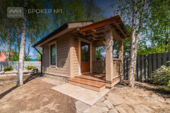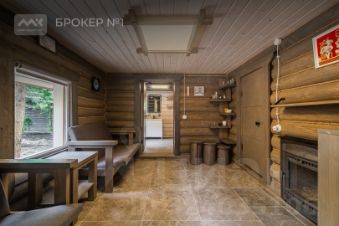 На участке площадью 12 соток есть детская площадка, навес для автомобилей, беседка, костровая зона и бревенчатая баня с зоной отдыха и настоящим винным погребом.