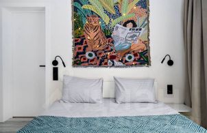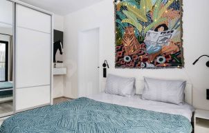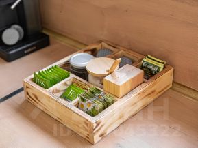 Кухонная зона: вся необходимая техника — холодильник, плита, микроволновка, чайник, кофемашина, посудомоечная машина, полный комплект посуды, есть кранчик с питьевой водой. Можно привезти с собой бутилированную.