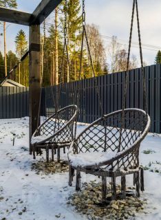 Костровая зона с гамаком и качелями.