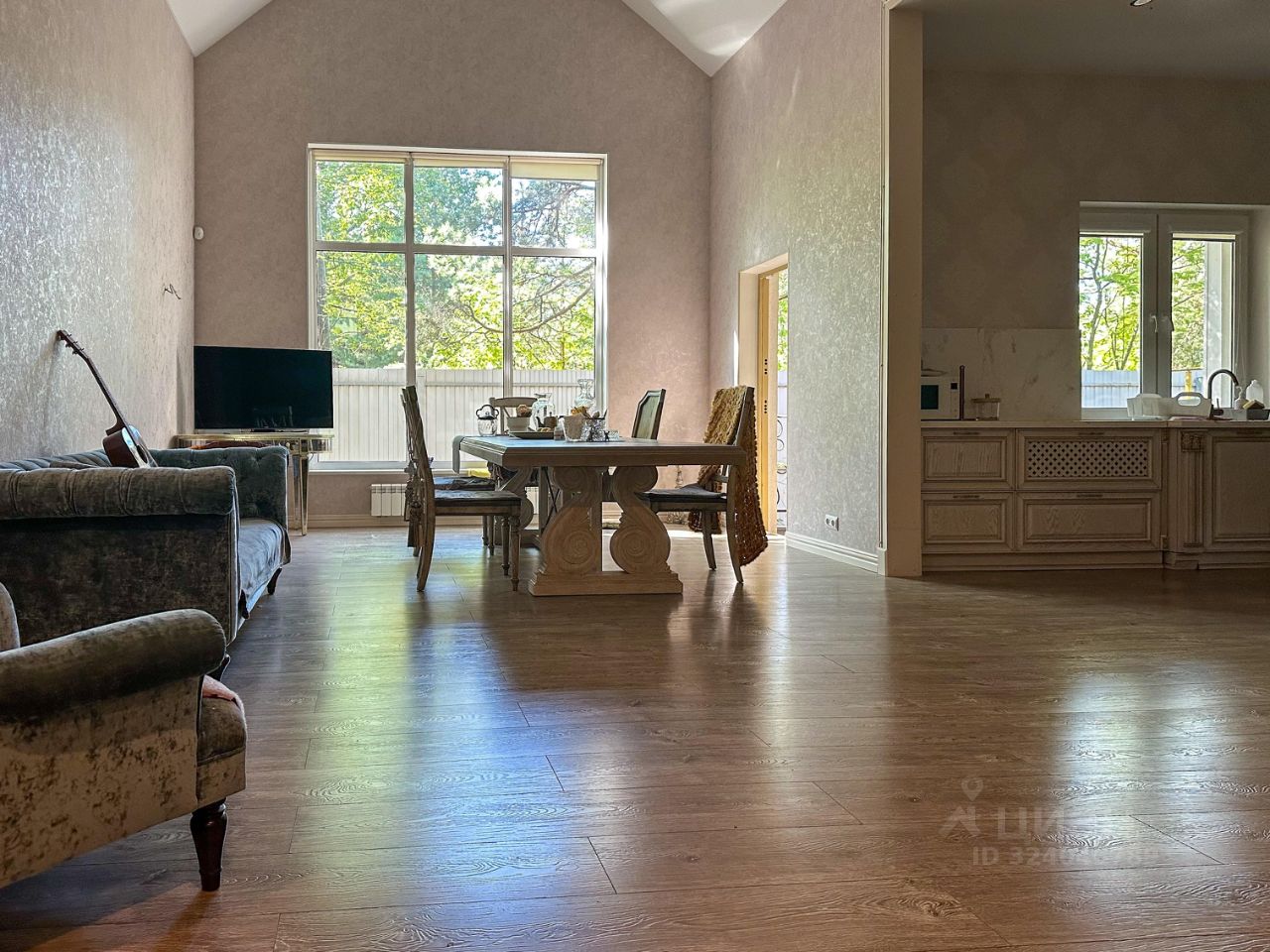 - В зоне кухни-гостиной мебель из массива+антикварная мебель из Италии.