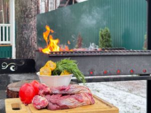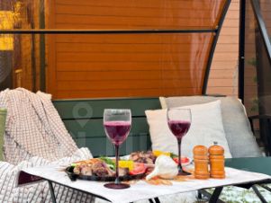 Два отдельных здания по 90 м², каждое с террасой и мангалом, комфортно размещает 6+2 гостей.