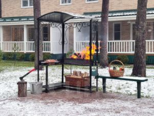 Площадка для детей, волейбольное поле, речной пляж, лесные тропы.
