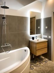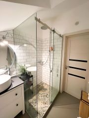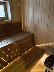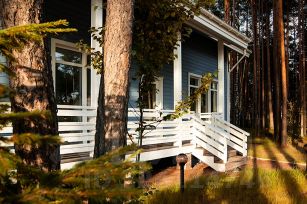 1 этаж: просторная кухня гостиная, спальня, с/у с сауной и террасса с видом на лес.