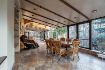 В исторической части Чёрной речки, среди аллей и благоустроенных парков, расположен дом площадью 1256,7 кв. м. с собственным парком, бассейном и приватной территорией.