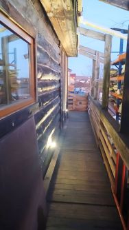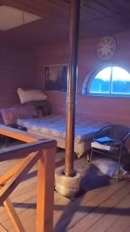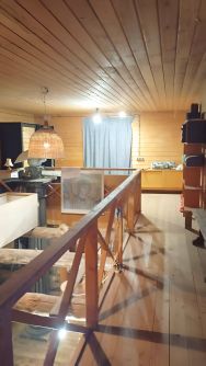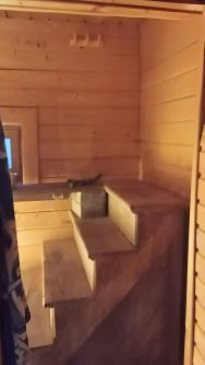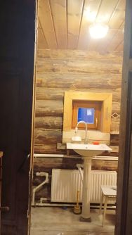 Сруб с отоплением от печи , камина. (брикеты, дрова..), эл.нагр. Разводка системы отопления по всем помещениям(полипропилен и радиаторы). Сауна в доме. Душ и туалет в доме. Бойлер. Теплый подвал под домом, h-2,5 м. Участок перед домом для парковки 2-3 авто и мангала. Земли практически нет, т.к. она заполнена фундаментом замороженного строительства и складом. Вода подается автоматической насосной станцией из колодца. Вода не питьевая. Канализация отведена в локальные очистные сооружения. Территория у дома огорожена перилами. Четыре окна от пола до потолка, это веранда с инфракрасным обогревателем. Стеклопакеты везде шведские деревянные. Заезд на Волхонское, с Таллинского (8 км) или с Пулковского шоссе. Дополнительно оплачивается эл. эн., дрова, откачка. КПП, шлагбаум.. Дрова имеются на пару месяцев лютых морозов. Дальше, сами.