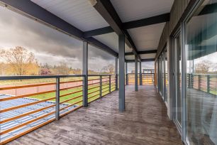 Комфортное размещение в 4 теплых спальнях на 23 места. На втором этаже - просторный холл и балконы с видом на окрестности.
