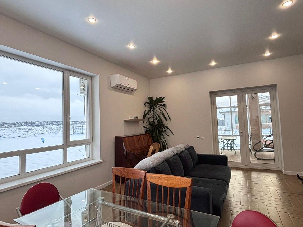 Просторная гостиная-кухня: Сердце дома — это большая светлая гостиная с панорамным окном, открывающим живописный вид на поле. Здесь можно собраться всей семьей или компанией друзей. Мягкий и большой раскладной диван приглашает к отдыху.