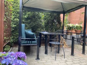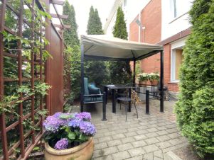 Есть два небольших дворика, и 3 открытых балкона на южной и северной стороне, гараж и 2 парковочных места.