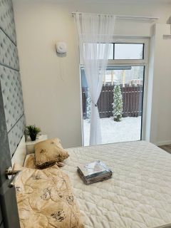В доме две спальни с кроватями, по 2 человека в каждую и в гостиной есть 1 раскладной диван-кровать.