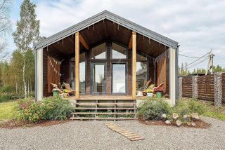 Дизайнерский каркасный барн 120 м², спрятанный в лесу.