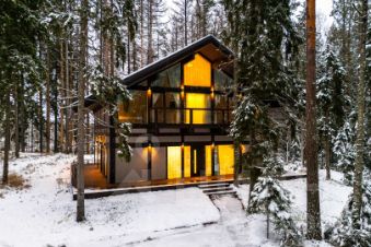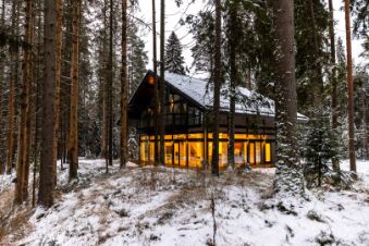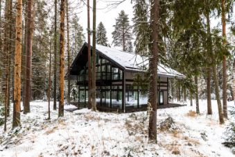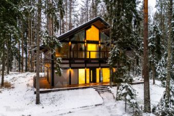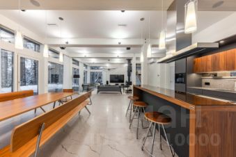 Просторная гостиная с камином, объединенная с кухней, имеет выход на террасу и потрясающий вид на лесной массив и озеро. А так же удобная прихожая с гардеробной, гостевой спальней и санузлом. Уникальным дополнением кухонной зоны является скрытая вторая кухня с отдельным входом с улицы. Ее удобно использовать, когда в доме происходит торжество или просто для хранения кухонной утвари или продуктов.
