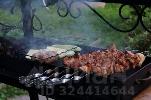 - посуда: тарелки, кружки, стаканы, бокалы и рюмки, вилки, ложки и т.д., кастрюли, сковородки, казан, шампура, гриль-решетка и большие блюда)