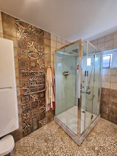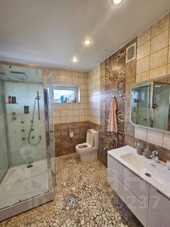 Большая кухня гостиная 60 кв.м. с настоящим камином. 3 спальни. 3 санузла: с душевой, ванной и турецкой сауной. Кабинет. Тренажерный зал. Много мест для хранения: кладовки, погреб. Есть мангал, тандыр и ещё много чего!