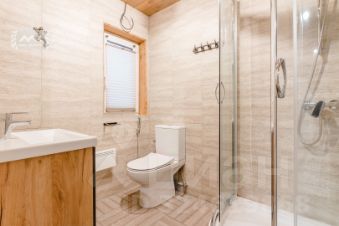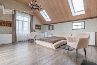 Дом состоит из трех спален (30м2+20м2, 20м2), просторной кухни гостиной 60 м2, двух санузлов, 2 гардеробных.