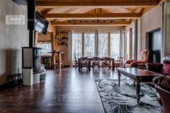• Первая зона — это просторная кухня гостиная с великолепным камином, высокими потолками, безграничным видом на простор озера Глубокого, которое восхищает воображение.