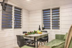 Терраса с мебелью и качелью.Близость к инфраструктуре:10 минут до магазинов и рынка,20 минут до горнолыжного курорта "Игора".