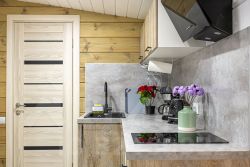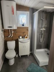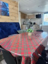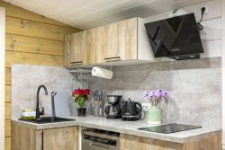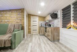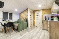 Маленький дом на 2-4 человек оснащен всеми удобствами:wi-fi, спальня,кухня-гостиная с двуспальным диваном,санузел,фен,стиральная машина,теплые полы,бойлер,постельное белье,полотенца,чайник,посудомоечная машина,кофеварка,микроволновка,детская кроватка по запросу.