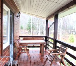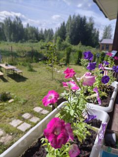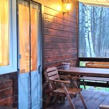 В доме : просторная кухня-гостиная с большой открытой верандой для чаепитий на свежем воздухе, 3 уютные изолированные комнаты, санузел с душевой кабиной. Вся мебель новая. Три удобных двуспальных дивана и двуспальная кровать с ортопедическим матрасом. Размещение до 6 гостей.