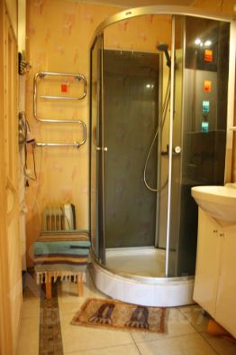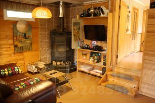 Кухня-гостиная на 1 этаже с чайником, микроволновкой, посудомойкой, печью-аэрогрилем, телевизором и обилием мест для хранения. На этом же этаже 1 спальня, сауна-душевая и туалет. Есть стиральная машина и сушилка, канализация.