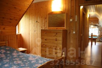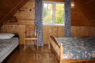 На участке два дома: каменный дом собственников и деревянный гостевой, он же сдается. Территория закрытая, с автоматическими воротами и просторной, очищаемой зимой парковкой на 5 авто.
