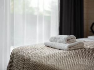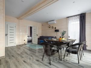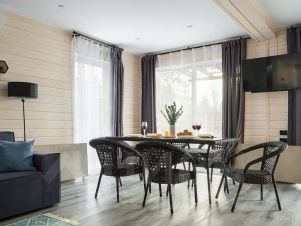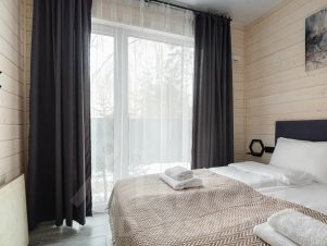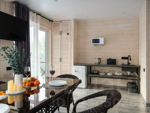 В доме 2 спальни (6 спальных мест), кухня-гостиная с полным комплектом посуды, холодильником, микроволновой печью, плитой и телевизором. Гостям предлагаются одноразовые наборы с предметами личной гигиены.