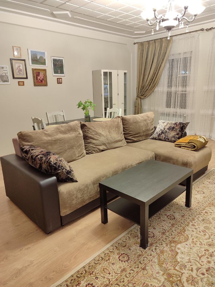 В зеленом массиве Мельничный ручей расположен наш уютный дом . В пользовании арендаторов 125 м2. Гостиная 34 м2, спальни 12 и 14 м2. Кухня 6 м2. Ванная совмещённая с туалетом (1 этаж) 5 м2. Сауна 2 м2. Есть также большой сан.узел на 2 этаже. Холодная кладовая. Прихожая 10м2. с большими встроенными шкафами. В ноябре сделан косметический ремонт, химчистка ковров и матрасов. Куплены новые наматрасники , а так же новые предметы гигиены в ванной комнате. На участке 12 соток расположено 2 дома. Дом хозяев в конце участка. Никто никому не мешает. Парковка на 2 машины. Всего двор выложен плиткой и в случае необходимости вмещает ненадолго 4 - 6 машин.