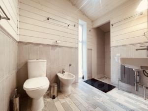 Дом 120 м2, два этажа. На первом этаже кухня-гостиная, где можно собраться всей семьей за круглым столом или уютно устроиться у камина, спальня, санузел с душем. Второй этаж- две просторные спальни, санузел с душевой, большая гардеробная-кладовка.