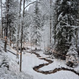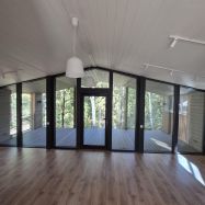 + Из больших панорамных окон открываются потрясающие виды на густой сосновый лес и ручей, который находится на границе участка.
