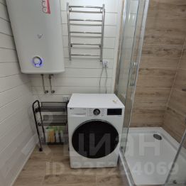 Санузел: Душевая, туалет, раковина, стиральная машина, фен для волос, полотенца.