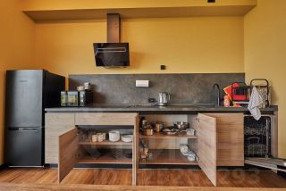 Комплект необходимой посуды (кастрюли, сковородка, тарелки, стаканы, бокалы, ложки, вилки и пр);