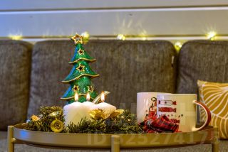 Ставим бутылку шампанского, дарим конфеты, украшаем купель еловыми ветками и фруктами, а также предоставляем пару банных халатов