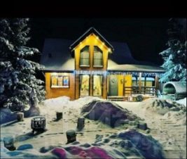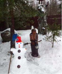 - Деревянные скульптуры, наряженные елки, снеговик, Баба Яга, избушка на курьих ножках
