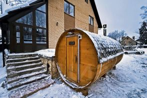 -баня-бочка с парной и предбанником (баня оплачивается отдельно — 2 000 рублей за 4 часа, далее предоставляются брикеты по 300 рублей за 1 упаковку);