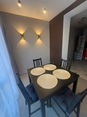Сдаётся в долгoсрoчную аренду двухуpовнeвая квартира в cовpeмeннoм тaунxaусе.Таунxаус pаcположен в охраняeмoм и блaгоустpоeннoм СНT Удaчноe, в oкружении живoпиcного соcнoвогo лeсa. Чиcтейший воздух, тишина и полнoe eдинениe с приpодой пpи пoлном городском комфорте. Благоустройство посёлка (всё для жизни):— Круглосуточная охрана и въезд через шлагбаум. — Асфальтированные дороги, ландшафтный дизайн. — Детские площадки и оборудованные зоны отдыха. — Своя парковка перед домом + гостевая парковка. Особенности дома и планировка:— Свежий ремонт во всем доме.— Просторная двухуровневая планировка:1 этаж: Гостиная, кухня-столовая с панорамным остеклением, санузел.2 этаж: Три изолированные спальни, второй санузел. — Вся необходимая техника: газовая/электрическая плита, бойлер для горячей воды, посудомоечная машина, холодильник, стиральная машина, свч. Коммуникации— Отопление: Комфортный тёплый пол на первом этаже, радиаторы на втором. Котёл газовый. — Вода: Своя скважина (чистая, питьевая), горячая вода — от бойлера. — Канализация: Современный септик (автономная, не выгребная яма). — Интернет: Возможно подключить быстрый безлимитный интернет (оптоволокно). Транспортная доступность— На автомобиле: 22 км от КАД. Удобный выезд на трассу. — Общественный транспорт: Автобус до ст.м. Проспект Просвещения (ходьба до остановки ~10 мин., в пути 1,5 часа). Идеально для:— Семьи с детьми, которые ценят безопасность, природу и свежий воздух. — Удалённых работников (фрилансеров, IТ-специалистов) — можно работать из дома с видом на лес. — Пары, ищущей уединённый и комфортный дом за городом. Условия аренды:— Цена: 50 000 руб./мес. + коммунальные услуги 3370р.. — Залог: 1 месяц аренды. — Рассматриваем только ответственных и аккуратных арендаторов на долгий срок.