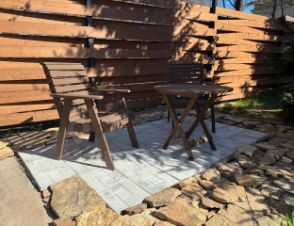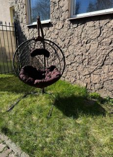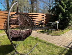 На территории есть вся необходимая садовая мебель: гамак, качели, стол и стулья, мангал, лежаки для загара.